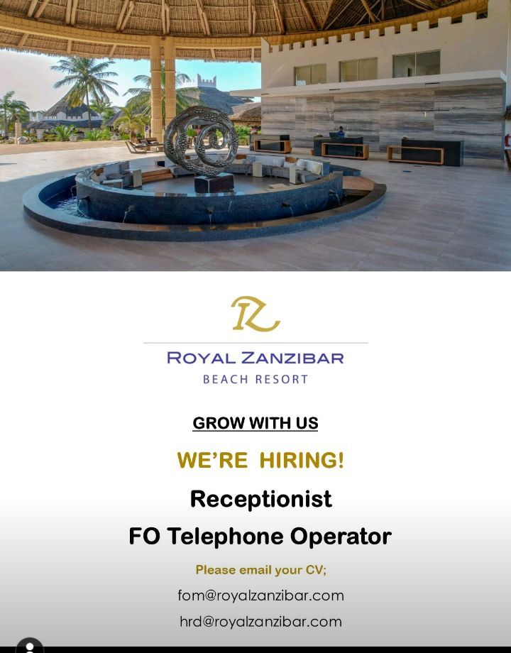July 12, 2024 Admin Receptionist Job location: Zanzibar Share this: Share on X (Opens in new window) X Share on Facebook (Opens in new window) Facebook Email a link to a friend (Opens in new window) Email Share on WhatsApp (Opens in new window) WhatsApp Share on X (Opens in new window) X Like Loading...