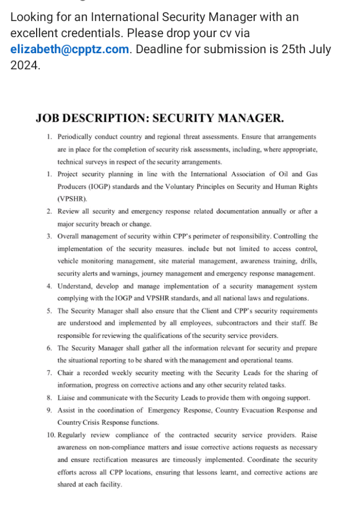 July 12, 2024 Admin Security Manager Deadline: 25 July, 2024 Submit application through the email on job post. Share this: Share on X (Opens in new window) X Share on Facebook (Opens in new window) Facebook Email a link to a friend (Opens in new window) Email Share on WhatsApp (Opens in new window) WhatsApp Share on X (Opens in new window) X Like Loading...