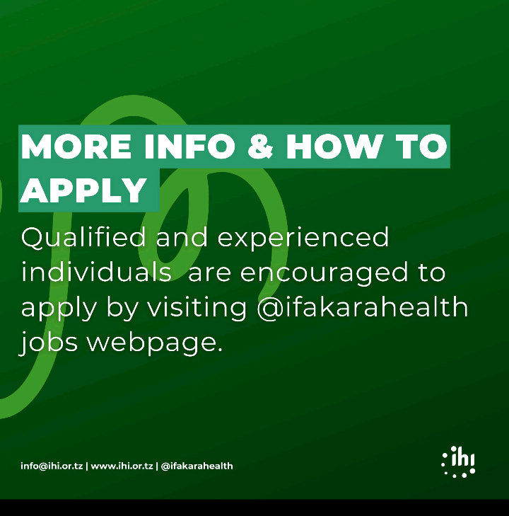 Submit application by visiting Jobs webpage: https://ihi.or.tz/our-job-posts/