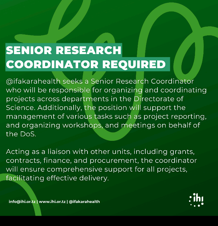 Submit application by visiting Jobs webpage: https://ihi.or.tz/our-job-posts/