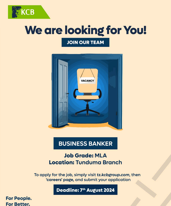 July 28, 2024 Admin Business Banker Job location: Tunduma Deadline: 7 August, 2024 Share this: Share on X (Opens in new window) X Share on Facebook (Opens in new window) Facebook Email a link to a friend (Opens in new window) Email Share on WhatsApp (Opens in new window) WhatsApp Share on X (Opens in new window) X Like Loading...