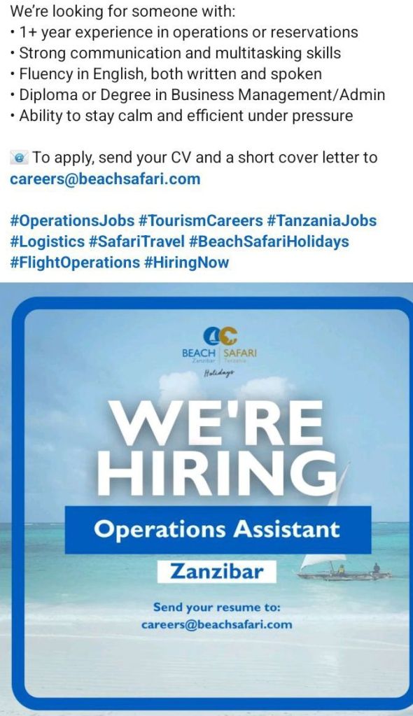 August 3, 2025 Recruiter Operations Assistant – Zanzibar Job location: Zanzibar Discover more from Ajira Tanzania| Nafasi za Kazi Tanzania| FG Subscribe to get the latest posts sent to your email. Type your emailโฆ Subscribe Share this: Click to share on X (Opens in new window) X Click to share on Facebook (Opens in new window) Facebook Click to email a link to a friend (Opens in new window) Email Click to share on WhatsApp (Opens in new window) WhatsApp Click to share on X (Opens in new window) X Like Loading...