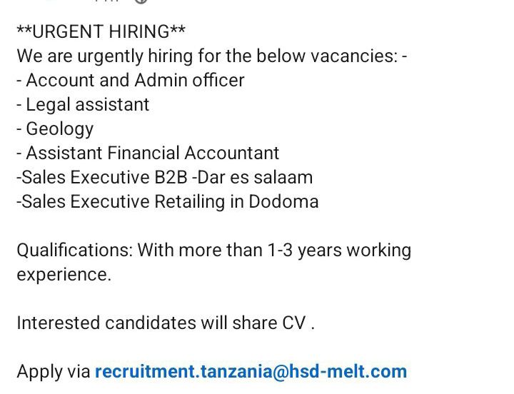August 7, 2025 Recruiter Assistant Financial Assistants Discover more from Ajira Tanzania| Nafasi za Kazi Tanzania| FG Subscribe to get the latest posts sent to your email. Type your emailโฆ Subscribe Share this: Click to share on X (Opens in new window) X Click to share on Facebook (Opens in new window) Facebook Click to email a link to a friend (Opens in new window) Email Click to share on WhatsApp (Opens in new window) WhatsApp Click to share on X (Opens in new window) X Like Loading...