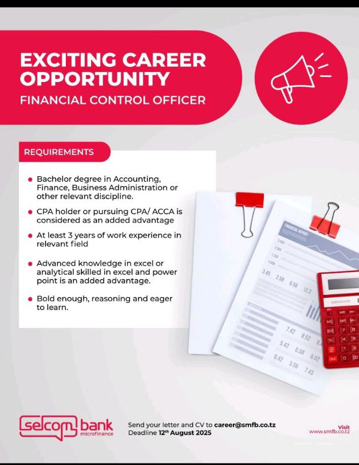 August 7, 2025 Recruiter Financial Control Officer Deadline: 12 August, 2025 Discover more from Ajira Tanzania| Nafasi za Kazi Tanzania| FG Subscribe to get the latest posts sent to your email. Type your emailโฆ Subscribe Share this: Click to share on X (Opens in new window) X Click to share on Facebook (Opens in new window) Facebook Click to email a link to a friend (Opens in new window) Email Click to share on WhatsApp (Opens in new window) WhatsApp Click to share on X (Opens in new window) X Like Loading...
