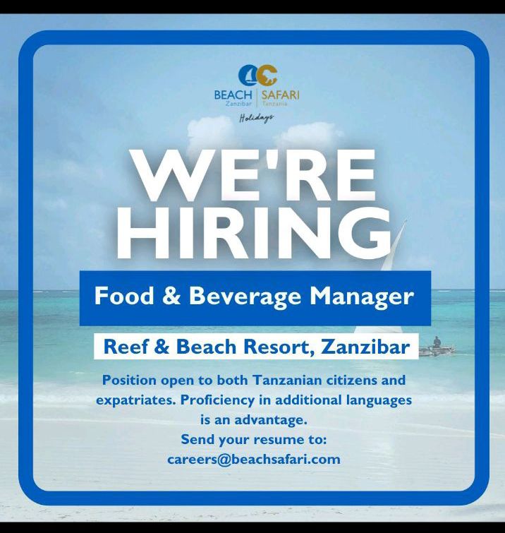 August 7, 2025 Recruiter Food and Beverage Manager Job location: Zanzibar Discover more from Ajira Tanzania| Nafasi za Kazi Tanzania| FG Subscribe to get the latest posts sent to your email. Type your emailโฆ Subscribe Share this: Click to share on X (Opens in new window) X Click to share on Facebook (Opens in new window) Facebook Click to email a link to a friend (Opens in new window) Email Click to share on WhatsApp (Opens in new window) WhatsApp Click to share on X (Opens in new window) X Like Loading...