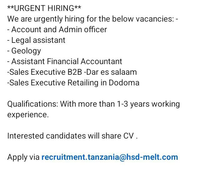 August 7, 2025 Recruiter Sales Executive B2B Job location: Dar es Salaam Discover more from Ajira Tanzania| Nafasi za Kazi Tanzania| FG Subscribe to get the latest posts sent to your email. Type your emailโฆ Subscribe Share this: Click to share on X (Opens in new window) X Click to share on Facebook (Opens in new window) Facebook Click to email a link to a friend (Opens in new window) Email Click to share on WhatsApp (Opens in new window) WhatsApp Click to share on X (Opens in new window) X Like Loading...