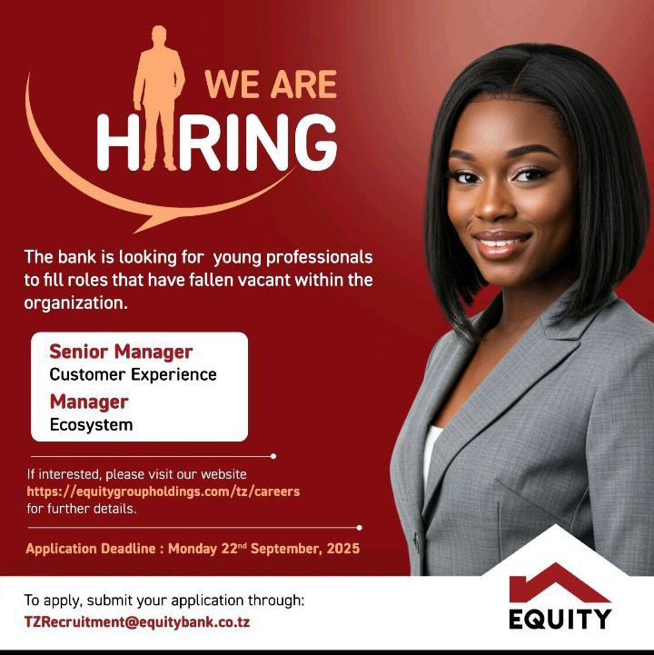 September 18, 2025September 18, 2025 Recruiter Senior Manager, Customer Experience Application: 22nd September 2025 Discover more from Ajira Tanzania| Nafasi za Kazi Tanzania| FG Subscribe to get the latest posts sent to your email. Type your emailโฆ Subscribe Share this: Click to share on X (Opens in new window) X Click to share on Facebook (Opens in new window) Facebook Click to email a link to a friend (Opens in new window) Email Click to share on WhatsApp (Opens in new window) WhatsApp Click to share on X (Opens in new window) X Like Loading...