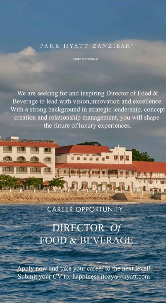 October 31, 2025 Recruiter Director of Food and Beverages Job location: Zanzibar Discover more from Ajira Tanzania| Nafasi za Kazi Tanzania| FG Subscribe to get the latest posts sent to your email. Type your emailโฆ Subscribe Share this: Click to share on X (Opens in new window) X Click to share on Facebook (Opens in new window) Facebook Click to email a link to a friend (Opens in new window) Email Click to share on WhatsApp (Opens in new window) WhatsApp Click to share on X (Opens in new window) X Like Loading...