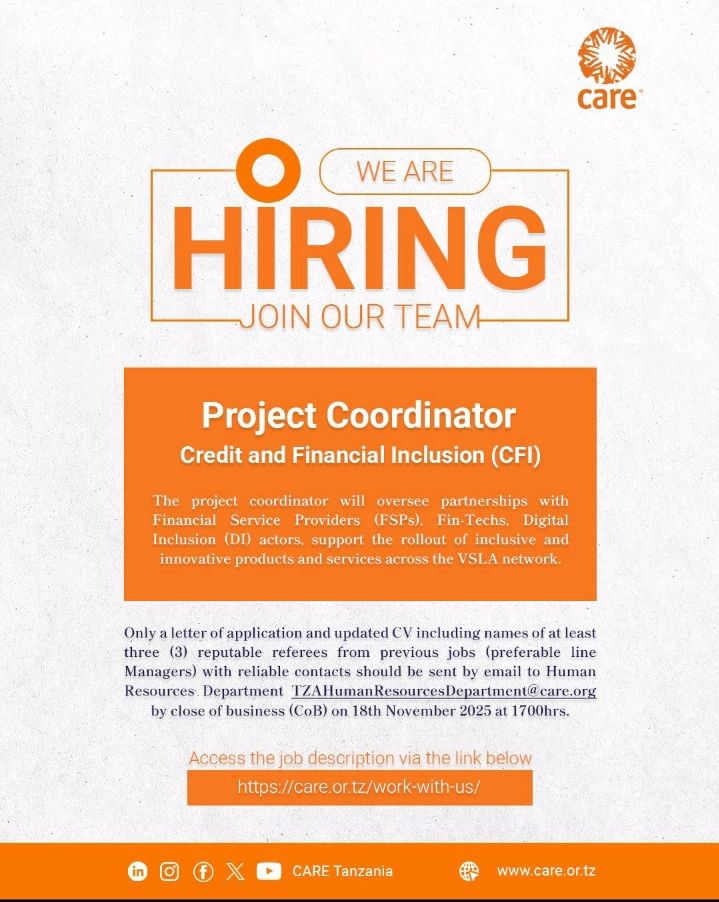 November 7, 2025 Recruiter Project Coordinator View the job description: Click here Discover more from Ajira Tanzania| Nafasi za Kazi Tanzania| FG Subscribe to get the latest posts sent to your email. Type your emailโฆ Subscribe Share this: Click to share on X (Opens in new window) X Click to share on Facebook (Opens in new window) Facebook Click to email a link to a friend (Opens in new window) Email Click to share on WhatsApp (Opens in new window) WhatsApp Click to share on X (Opens in new window) X Like Loading...