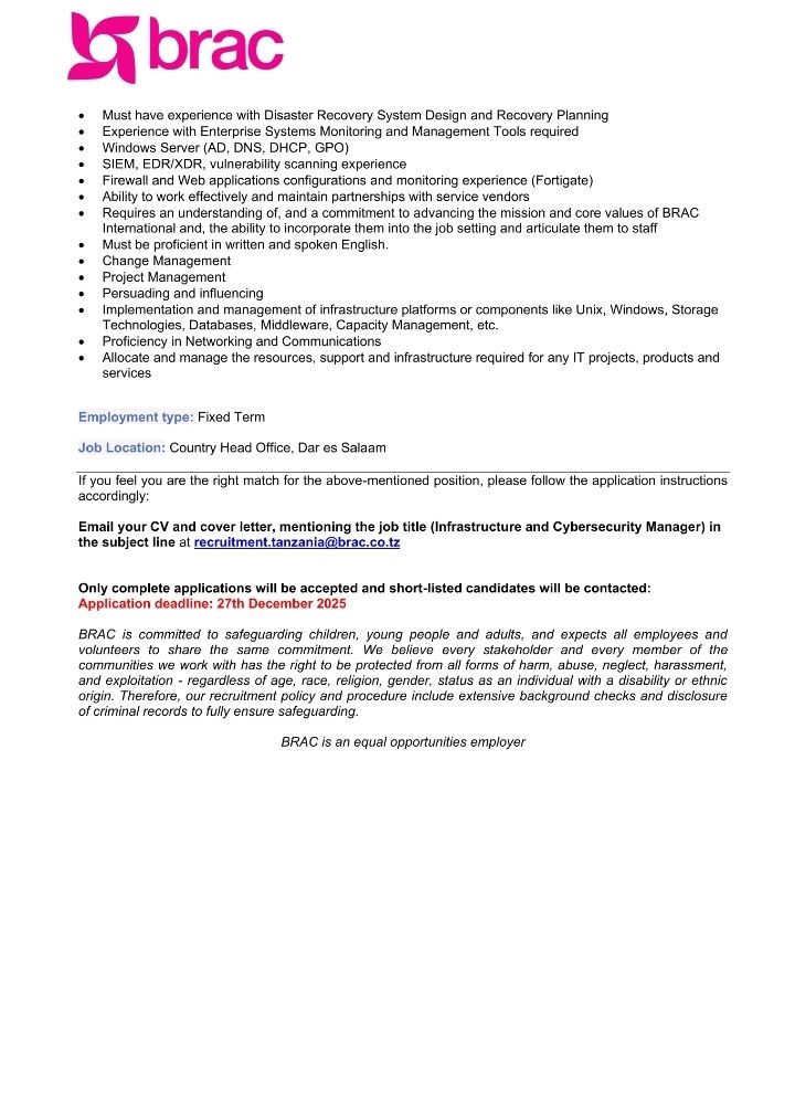 New Job Alert – Infrastructure and Cybersecurity Manager